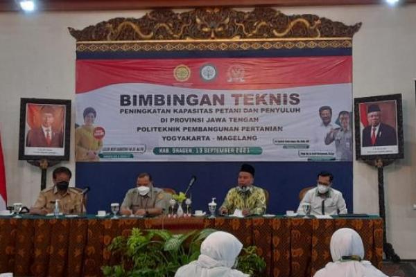 Kementan, melalui Politeknik Pembangunan Pertanian Yogyakarta Magelang (Polbangtan YoMa), berkolaborasi dengan Komisi IV DPR RI, menggelar Bimbingan Teknis (Bimtek) untuk petani dan penyuluh pertanian Kabupaten Sragen, Jawa Tengah.