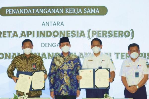 PT Kereta Api Indonesia (Persero) menandatangani Perjanjian Kerja Sama dengan Badan Nasional Penanggulangan Terorisme (BNPT) tentang Sinergisitas Pencegahan Paham Radikal dan Terorisme. (Foto: Ist)