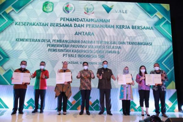 Kerjasama ditandai penandatanganan Memorandum of Understanding (MoU) antara Menteri Desa, Pembangunan Daerah Tertinggal dan Transmigrasi Abdul Halim Iskandar dengan Sekda Pemprov Sulawesi Selatan Abdul Hayat Gani, Bupati Luwu Timur Budiman dan Presiden Direktur PT Vale Indonesia Febriany Eddy yang dilaksanakan di Hotel Four Point by Sheraton Makassar, Sulsel pada Jumat (8/10).