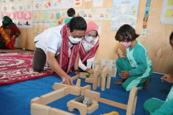 Menteri Desa, Pembangunan Daerah Tertinggal dan Transmigrasi (Mendes PDTT) Abdul Halim Iskandar bersama Nyai Lilik Umi Nashriyah di Pendidikan Anak Usia Dini (PAUD) Anak Ceria dan Taman Kanak-kanak (TK) Pertiwi Banaran. Foto: humas/jurnas.news
