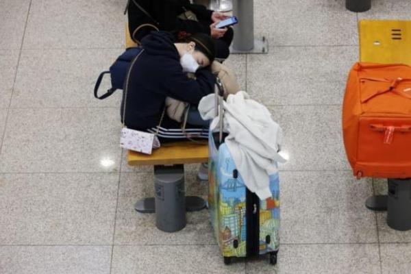 Seorang wanita mengenakan masker untuk mencegah tertular COVID-19 tidur siang di Bandara Internasional Incheon di Incheon, Korea Selatan, 30 November 2021. (Foto: Reuters/Kim Hong-Ji)
