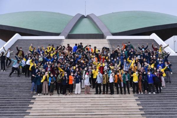 Ketua DPR RI, Puan Maharani foto bareng ratusan mahasiswa dari berbagai perguruan tinggi di Indonesia. (Foto: Humas DPR RI)