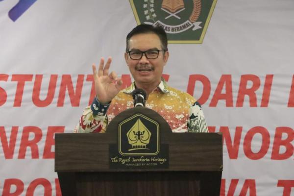Kepala Badan Kependudukan dan Keluarga Berencana Nasional (BKKBN) Dokter Hasto Wardoyo mengukuhkan Ketua Tim Penggerak PKK Provinsi Jawa Tengah Atikoh Ganjar Pranowo sebagai Bunda Genre (Generasi Berencana), sekaligus menjadi Duta Penurunan Stunting dilakukan di The Royal Surakarta Heritage, Kamis (23/12).