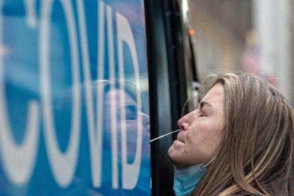 Seorang wanita menjalani tes penyakit virus corona (COVID-19) di situs pengujian pop-up saat varian virus corona Omicron terus menyebar di Manhattan, New York City, pada 27 Desember 2021. (Foto: REUTERS/Jeenah Moon)