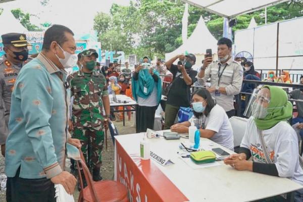 Ketua MPR, Bambang Soesatyo berdialog dengan tenaga medis saat meninjau pelaksanaan vaksinasi Covid-19, di Kendari, Sulawesi Tenggara, Rabu (8/2/22). (Foto: MPR)