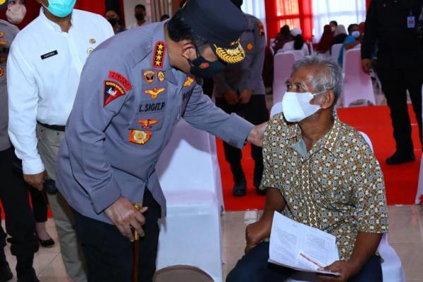 Kapolri Jenderal Listyo Sigit Prabowo saat meninjau proses vaksinasi tahap III alias Booster di Klaten, Jawa Tengah, Sabtu (12/3). (Foto: Humas Polri)