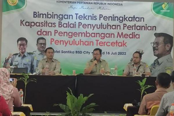 Menindaklanjuti hal tersebut Pusat Penyuluhan Pertanian mengadakan Bimbingan Teknis Peningkatan Kapasitas BPP dan Pengembangan Media Penyuluhan Tercetak di lokasi IPDMIP. Kegiatan dilaksanakan 14 Juli - 16 Juli 2022 di Hotel Santika, BSD City, Tangerang.