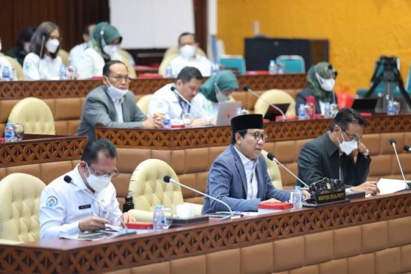Menteri Desa, Pembangunan Daerah Tertinggal dan Transmigrasi, Abdul Halim Iskandar saat rapat kerja dengan Komisi V DPR dengan agenda Evaluasi Pelaksanaan APBN TA 2022. (Foto: Humas Kemendes PDTT)