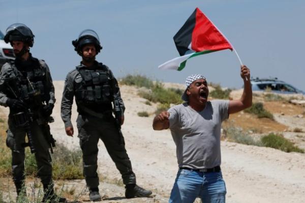 Di akun Twitternya, Netanyahu pada hari Minggu mengatakan kehadiran bendera Palestina di protes Tel Aviv adalah "hasutan liar".