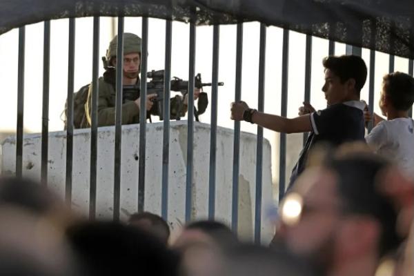 Qalandiya, yang merupakan bagian dari Yerusalem Timur yang diduduki tetapi dipisahkan dari kota lainnya oleh tembok pemisah Israel, adalah situs salah satu titik masuk utama bagi warga Palestina di Tepi Barat yang diduduki ke Yerusalem (File: Abbas Momani/AFP)