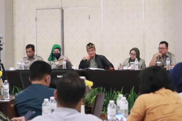 Kepala Badan Penyuluhan dan Pengembangan Sumber Daya Manusia Pertanian (BPPSDMP), Dedi Nursyamsi saat Pers Conference menjelang pelaksanaan Pelatihan Sejuta Petani Penyuluh Volume 5 tahun 2023, Bogor, Senin (13/3).