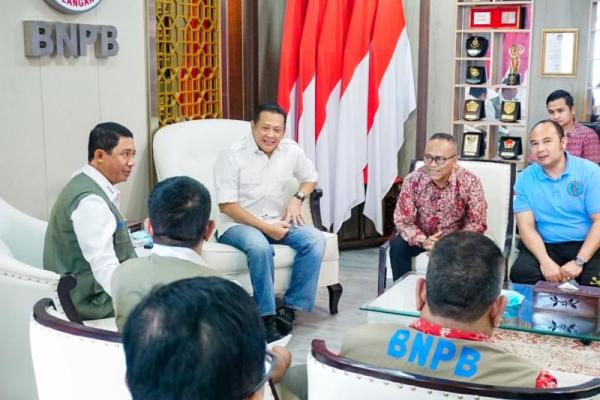 Ketua MPR, Bambang Soesatyo bertemu Kepala BNPB Letjen TNI Suharyanto, di Graha BNPB, Jakarta, Jumat (24/3/23). (Foto: Humas MPR)