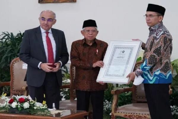 Penghargaan itu diberikan, atas kiprah dan kontribusi nya dalam mengokohkan Islam wasathiyyah di Indonesia, serta mendukung risalah Al Azhar dalam membangun peradaban Islam global. Wapres pun mengungkapkan apresiasi nya atas kiprah Al Azhar dalam membangun peradaban Islam dunia.