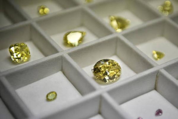 Berlian di sebuah pameran di Moskow, 2019. (Alexander Nemenov / AFP)