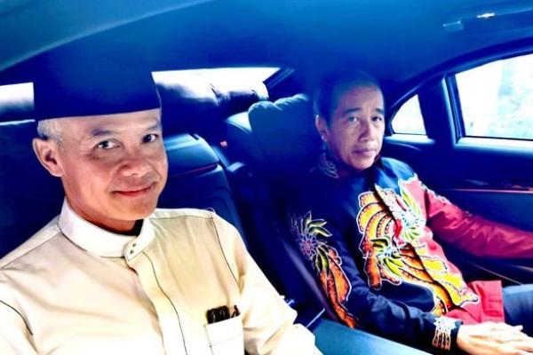 Capres PDIP Ganjar Pranowo pulang satu mobil dengan Presiden Jokowi seusai deklarasi Capres PDIP oleh Ketum PDIP Megawati di Istana Batu Tulis. (Agus Suparto/Fotografer Presiden Jokowi).