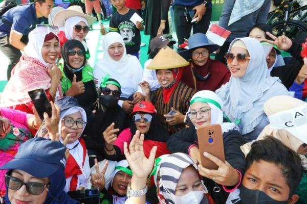 Gubernur Jawa Timur Khofifah Indar Parawansa di tengah-tengah peserta jalan sehat 1 Muharram 1445 H, Rabu (19/7/2023). Foto: dok. jurnas.news