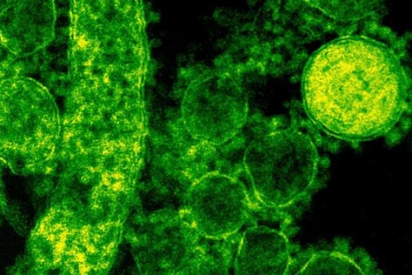 Partikel dari virus korona sindrom pernapasan Timur Tengah (MERS) yang muncul pada tahun 2012 terlihat dalam mikrograf elektron transmisi berwarna yang tidak bertanggal dari Institut Nasional untuk Alergi dan Penyakit Menular (NIAID). (Reuters)