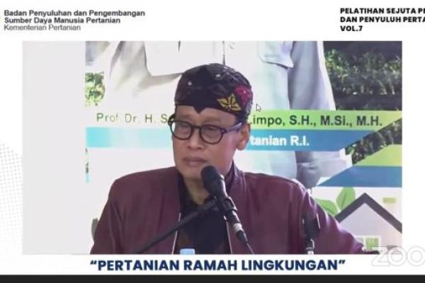 Kepala BPPSDMP, Dedi Nursyamsi pada soft opening Pelatihan Sejuta Petani dan Penyuluh Vol. 7 Tahun 2023, yang mengangkat tema Pertanian Ramah Lingkungan, Rabu (26/7).