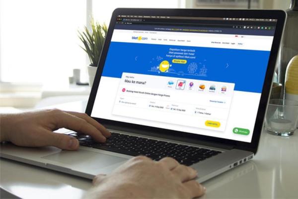 Seorang membuka aplikasi tiket.com. (Foto: Ist)