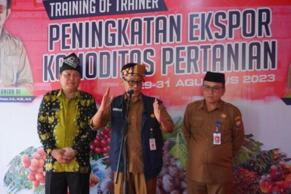 Kepala BPPSDMP Kementan pada Pembukaan Training of Trainers (TOT) Peningkatan Ekspor Komoditas bagi Widyaiswara, Dosen, Guru dan Penyuluh Pertanian di Jambi, Selasa, (29/8/23). (Foto: Kementan)