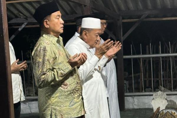 Ketua Umum PBB Yusril Ihza Mahendra berdoa di makam Kiai Abdullah Fadih (Foto: Ist)