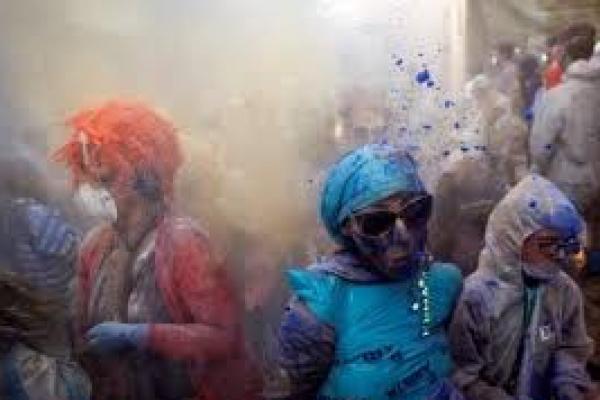 Para penduduk desa mengisi kisaran ratusan tas tepung kue yang diwarnai dengan pewarna makanan untuk digunakan sebagai bom. Pertempuran itu dimulai dengan dering lonceng sapi, kemudian orang-orang berusaha memadamkan kobaran api dengan tepung sebayak mungkin.