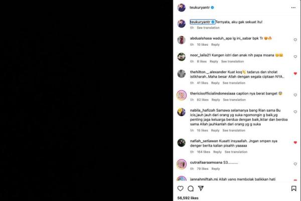Unggahan yang dibagikan Teuku Ryan tersebut tentu saja mengundang tanya warganet. Bahkan, di antara warganet banyak yang mengaitkan unggahan Teuku Ryan tersebut dengan isu keretakan rumah tangga yang akhir-akhir ini tengah ramai diperbincangkan.