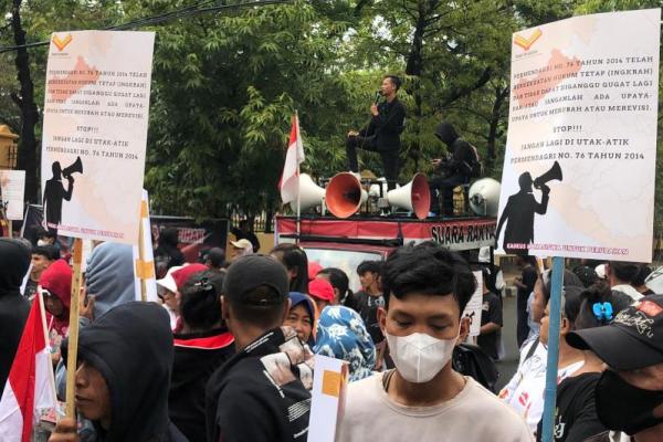 "Kedua, kita meminta juga kepada baik dari penegak hukum atau pemerintah, khususnya hari ini Kementerian ATR berpihak kepada masyarakat, yang tentunya Kementerian ATR hadir sebagai negara untuk melindungi masyarakat dari oknum-oknum mafia tanah sehingga harus kita kawal dan kita lindungi agar sebuah negara tidak kalah oleh mafia peradilan," tegasnya.