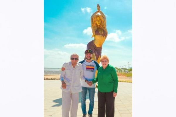 Penyanyi tersebut kemudian membagikan foto orangtua dan saudara laki-lakinya dengan Walikota Barranquilla, serta foto solo patung dan peresmian patung tersebut.