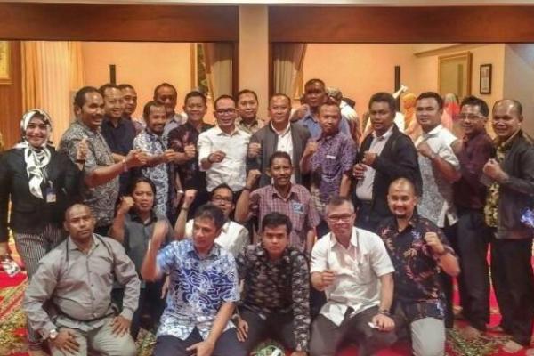 Menaker Hanif Dhakiri bersama para pimpinan federasi dan konfederasi serikat pekerja dalam acara diskusi dan bincang santai.