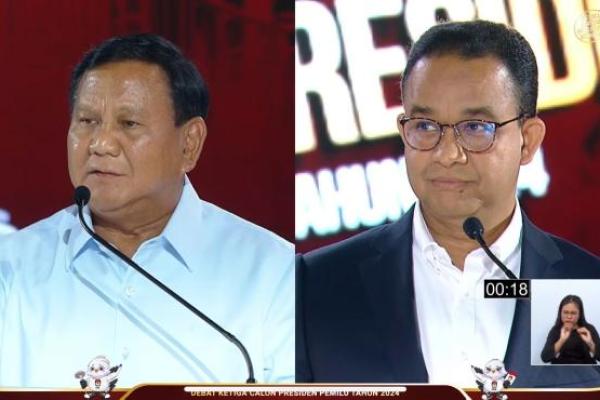 Prabowo Subianto dan Anies Baswedan dalam debat calon presiden. (Foto: Youtube KPU).
