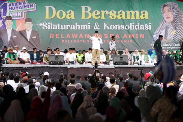 "Alhamdulillah. Para tokoh, jaringan alumni, sukarelawan yang bergerak alhamdulillah telah menunjukkan bahwa masyarakat Bali (dukung) AMIN. Targetnya minimal separuh dari Bali bisa mendukung AMIN. Karena meskipun beda partai, beda latar belakang yang macam-macam, tapi semua hati nurani pasti ingin adanya perbaikan," ungkap Gus Imin.