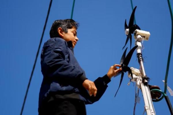 Keluarga Al-Attar telah memasang tenda mereka di sisi rumah satu lantai, memungkinkan Hussam naik ke atap dan memasang dua kipasnya, satu di atas yang lain, untuk bertindak sebagai turbin angin kecil yang mampu mengisi baterai.