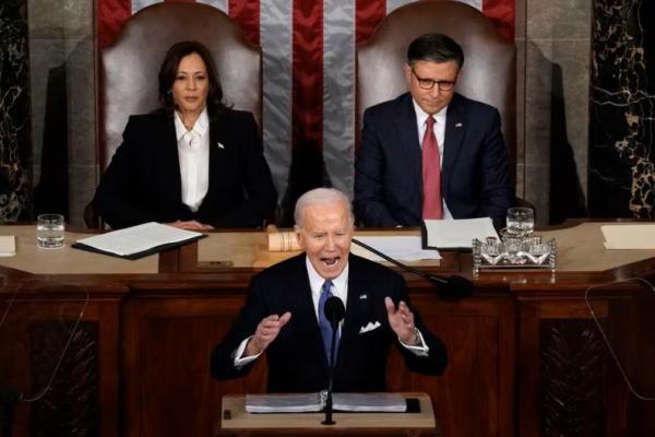 Dalam pidatonya yang berdurasi 68 menit di depan Kongres, Biden, seorang politisi Partai Demokrat, memberikan kontras yang tajam dengan lawannya dari Partai Republik. Dengan berani dia menantang para pendukung Trump di ruang sidang dalam sebuah pidato yang ditonton baik karena kinerja presiden berusia 81 tahun itu maupun karena usulan kebijakannya.