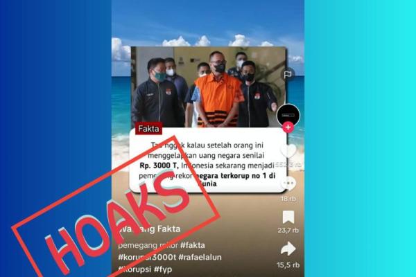 Dengan demikian, video narasi yang mengeklaim Indonesia menjadi negara terkorup no 1 di dunia, usai Rafael Alun korupsi sebanyak Rp 3000 triliun adalah SALAH atau hoaks.