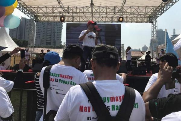 Jakarta - Menteri Ketenagakerjaan M. Hanif Dhakiri merayakan hari kemenangan buruh 1 Mei 2017 bersama ribuan buruh di Eks Driving Senayan. Perayaan ini dikemas dalam acara Festival May Day yang diselenggarakan Serikat Pekerja, Apindo dan Kemnaker.