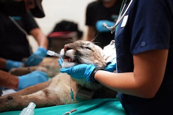 Dokter hewan San Diego Humane Society merawat anak singa gunung. (FOTO: SAN DIEGO HUMAN SOCIETY)