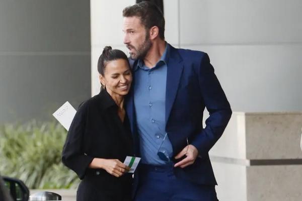 Duo ini saat itu sedang menuju ke suatu pertemuan, dengan Ben Affleck mengenakan setelan jas biru tua dan kemeja berkancing biru muda.