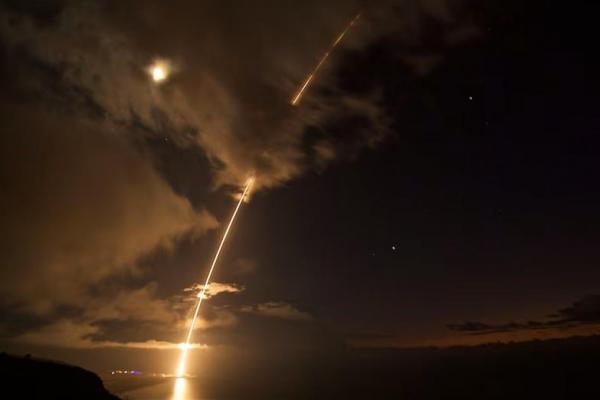 Target rudal balistik jarak menengah diluncurkan dari Pacific Missile Range Facility, sebelum berhasil dicegat oleh rudal Standard Missile-6 di Kauai, Hawaii, AS, 29 Agustus 2017. Foto via REUTERS