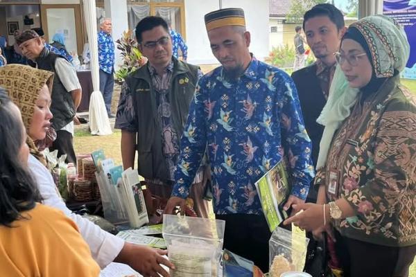 epala BPPSDMP Kementan, Idha Widi Arsanti meninjau pameran produk olahan pertanian yang dipamerkan perwakilan dari provinsi lokasi READSI pada Jambore Nasional (Jamnas) Widyaiswara Indonesia ke-3 tahun 2024 di BBPP Lembang (Foto: Kementan)