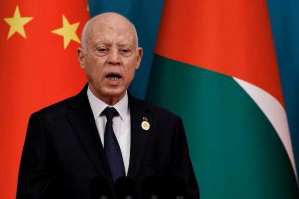 Presiden Tunisia Kais Saied menyampaikan pidato Forum Kerja Sama Tiongkok-Negara Arab, di Wisma Negara Diaoyutai di Beijing, Tiongkok, 30 Mei 2024. REUTERS