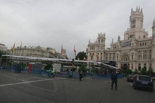 Suasana Cibeles Fountain jelang laga terakhir La liga
