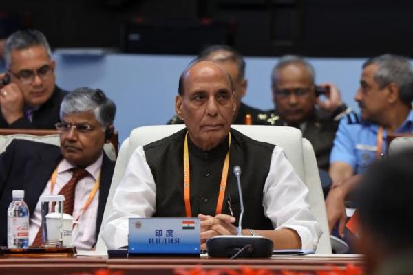 Menteri Pertahanan India Rajnath Singh menghadiri Pertemuan Menteri Pertahanan Organisasi Kerja Sama Shanghai di Qingdao, Provinsi Shandong, Tiongkok, 26 Juni 2025. REUTERS