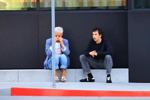 Matty Healy terlihat menghibur ibunya yang menangis, Denise Welch, sambil berdiri di luar sebuah restoran di West Hollywood pada hari Kamis (30/7/2025). (FOTO: BACKGRID)
