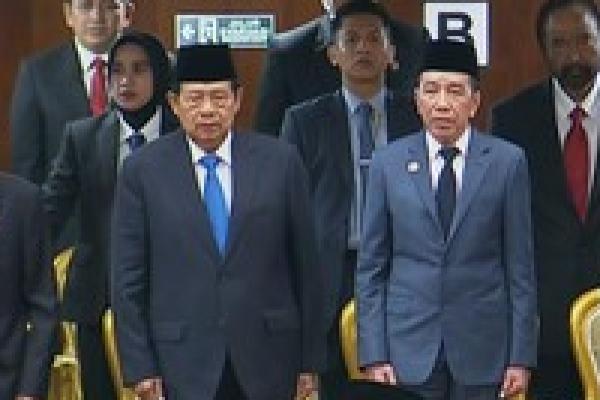 Presiden ke-6 RI Susilo Bambang Yudhoyono dan Presiden ke-7 RI Joko Widodo. (Tangkapan layar TVR Parlemen)