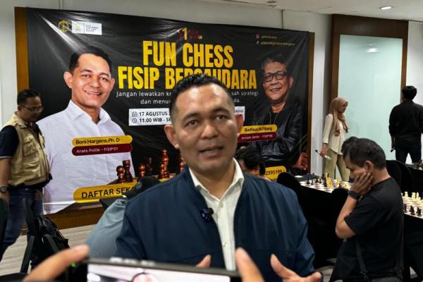 Jakarta, jurnas.news - Calon Ketua Umum Ikatan Alumni (ILUNI) Universitas Indonesia, Boni Hargens menggelar perlombaan catur `FUN Chess FISIP UI Bersaudara` bertepatan dengan Hari Raya Kemerdekaan Indonesia ke-80 di Aryaduta Hotel, Semanggi Jakarta, pada Minggu, 17 Agustus 2025.