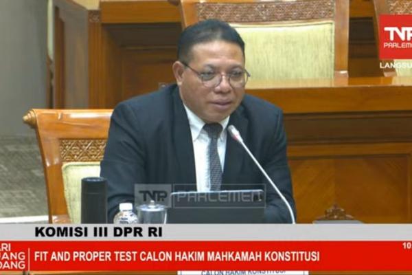 Tangkapan layar calon Hakim Konstitusi, Inosentius Samsul saat uji kelayakan dan kepatutan di Komisi III DPR RI. (TVR Parlemen)