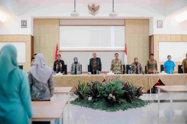 Wakil Menteri Sosial (Wamensos) Agus Jabo Priyono (keempat dari kiri) saat menutup retret Pembekalan Guru dan Kepala Sekolah Rakyat tahap IC di Pusat Pendidikan, Pelatihan, Pengembangan Profesi di Margaguna, Jakarta, Kamis (Foto: Kemensos)
