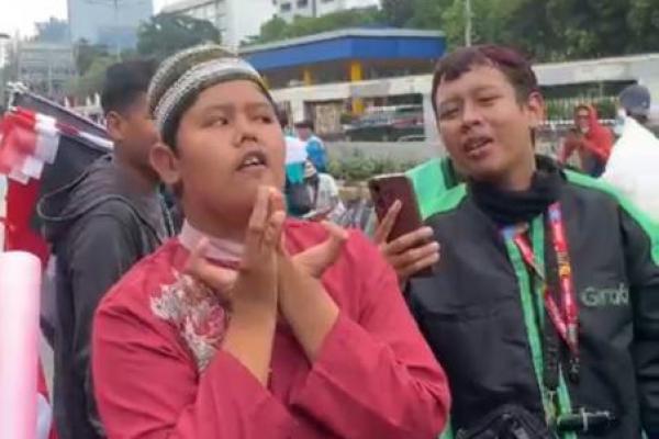 Kehadiran Badru, yang dikenal sebagai influencer disabilitas, cukup mendapat perhatian di lokasi demo itu.