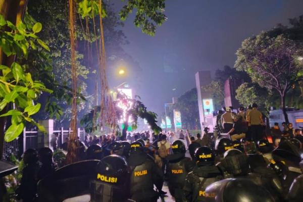 Menurut pantauan jurnas.news hingga pukul 19.00, polisi memukul mundur massa di kawasan Kompleks Gelora Bung Karno (GBK) dan Patal Senayan menggunakan gas air mata.